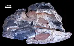Campinasuchus is known from four partial skulls from the Honorópolis District of the Adamantina Formation, Bauru Basin, dating to the Turonian or the Santonian stage of the late Cretaceous, about 93.5-83.5 million years ago. The specimens were collected at Três Antas Farm, Campina Verde County of the Minas Gerais State. The holotype CPP 1235 consists of a well-preserved posterior skull and partial rostrum, and the paratypes, CPP 1234, partial skull, CPP 1236, nearly complete rostrum and CPP 1237, partial skull (including mandible) and associated postcranial skeleton.[2]