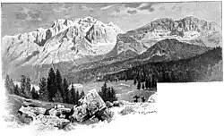 Campo Carlo Magno (elevation 1682 m) is a pass in the Adamello-Brenta mountain region in Italy. It connects the Val Rendena and the Val di Sole. To the west of the pass are the Adamello-Presanella mountains, to the east the Brenta Dolomites.