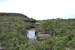 The main threats to the campo rupestre come from mining, extraction of native plants, cattle ranching, tourism, urban expansion, climate change and invasive species.[12] Because this ecoregion has received far less attention from both the scientific community and the general public it stands out as a delicate area in terms of conservation status. In fact, in 2005, UNESCO emphasized the importance of conserving the campo rupestre by recognizing the Espinhaço Range as part of the Biosphere Reserve, with two-thirds of its 3 076 million hectares constituting conservation units.[19] Still, few scientific studies have addressed the biodiversity and conservation of the campo rupestre when compared to forested regions in Brazil.[12] Moreover, even though tourism has grown over the past four decades due to facilitated access, the general public is still unaware of the ecosystem services this region promotes and the benefits of preserving the campo rupestre.