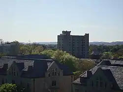 The main part of the campus of Virginia Tech is located in Blacksburg, Virginia; the central campus is roughly bordered by Prices Fork Road to the northwest, Plantation Road to the west, Main Street to the east, and U.S. Route 460 bypass to the south, although it also has several thousand acres beyond the central campus. The Virginia Tech campus consists of 130 buildings on approximately 2,600 acres (1,100 hectares).[2][3] It was the site of the Draper's Meadow massacre in 1755 during the French and Indian War.