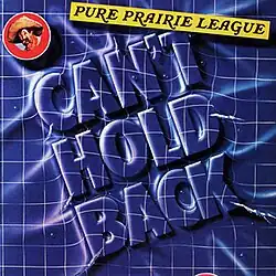 Can't Hold Back is the seventh studio album by American country rock band Pure Prairie League, released by RCA Records. It was the first album to feature future country music star Vince Gill, who had auditioned to replace one of the Goshorn brothers. Gill jammed with the band and they offered him the position of vocalist and guitar immediately. They were not unfamiliar with Gill as, according to band member Michael Reilly, “We had seen him play in 1976 when the band he was playing with opened up for us in Oklahoma City”, remarks Reilly. “We offered him the gig then, but he said, 'Oh no, I’m playing bluegrass'”. Two years later he came to Los Angeles with Byron Berline and Sundance, and after we jammed again for a few hours, we offered him the job on the spot and he accepted”.[1]