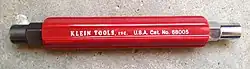 A can wrench is a wrench made to open a telephone distribution terminal also called a telco can or demarcation point box. One end of the can wrench is a 7/16 inch hex socket used for recessed fasteners on closures, and the other end is a 3/8 inch hex socket for use on binding posts. The wrench is also referred to as a 216C tool which was the Bell System specification version. They are often insulated against electric shock. The hex socket on each end is a thin wall thickness to allow the outside diameter to be placed into the tight recessed access often found on telco cans and demarc boxes.