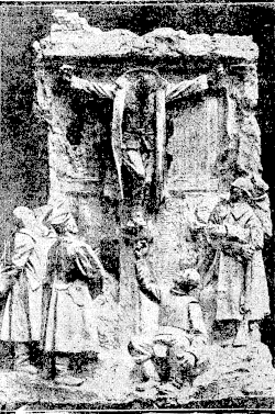 Canada's Golgotha is a 32-inch-high (810 mm) bronze sculpture by the British sculptor Francis Derwent Wood, produced in 1918. It illustrates the story of the Crucified Soldier from the First World War and depicts a Canadian soldier crucified on a barn door and surrounded by jeering Germans. It is now on show at the Canadian War Museum.[1]
