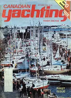 Canadian Yachting was founded in September 1976 (Volume 1, Number 1) by publisher Gerald Gordon Kidd, under the editorship of Ron Joiner, assisted by John Turnbull, working out of the Vancouver, British Columbia offices of Pacific Yachting Magazine[9] (also published by Gerald Kidd),[10] although a Church Street, Toronto address was listed as their formal address, and later headquarters. The first issue included an extensive preview of "Dockside 76" that was to be held in September of that year at Ontario Place, under the title "Dockside Boat Show Section."[9]