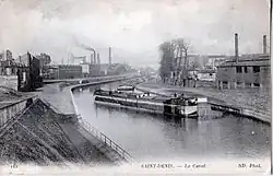 The Canal Saint-Denis (French pronunciation: [kanal sɛ̃ dəni]) is a canal in Paris, France that is 6.6 kilometres (4.1 mi) in length.[1] The canal connects the Canal de l'Ourcq, at a point north-northwest of the Bassin de la Villette in the 19th arrondissement, with the suburban municipalities of Saint-Denis and Aubervilliers in the department of Seine-Saint-Denis. There are seven locks along the canal's route, and, near Saint-Denis, the canal discharges into the Seine.[1]