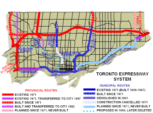 - Toronto By-Pass (this comprised the highway stretches of today's Highway 427 from the QEW to 401 and Highway 401 from Highway 427 to Pickering)