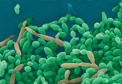 - ^ a b c Sardi, J. C. O.; Scorzoni, L.; Bernardi, T.; Fusco-Almeida, A. M.; Mendes Giannini, M. J. S. (2013). "Candida species: current epidemiology, pathogenicity, biofilm formation, natural antifungal products and new therapeutic options". Journal of Medical Microbiology. 62 (Pt 1): 10–24. doi:10.1099/jmm.0.045054-0. PMID 23180477.