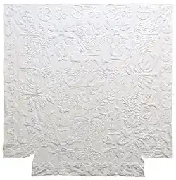 Loom-woven or machine-made candlewicks of the early 19th century are white bedcovers with designs created during the weaving process by raising loops over a small twig or tool.[1][2]