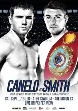 - ^ a b "Canelo to fight 154-pound titlist Smith on Sept. 17". 24 June 2016. Retrieved 25 June 2016.