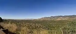The Canelo Hills are underlain by northwest striking folded and faulted Permian sedimentary rocks and Jurassic–Triassic volcanic rocks. The southwest margin extending toward the Patagonias is underlain by Cretaceous–Eocene volcanics.[1] The southern end of the Canelo Hills contain evidence for a volcanic caldera, the Parker Canyon Caldera. This caldera is mapped as a kidney shaped feature stretching from just north of Canelo Pass some 15 miles (24 km) to the southeast into the Huachucas and underlying the eastern portion of the San Rafael Valley.[2] The Jurassic volcanics in the area consist of rhyolite welded tuff containing large exotic blocks of limestone, quartzite and other rock types interpreted as "intercaldera megabreccia lenses".[2]