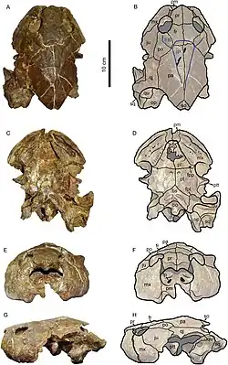 - ^ a b c d Cadena, E.A.; Link, A.; Cooke, S.B.; Stroik, L.K.; Vanegas, A.F.; Tallman, M. (2021). "New insights on the anatomy and ontogeny of the largest extinct freshwater turtles". Heliyon. 7 (12): e08591. Bibcode:2021Heliy...708591C. doi:10.1016/j.heliyon.2021.e08591. PMC 8717240. PMID 35005268.