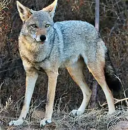 In 2015, a more thorough comparative study of mitochondrial and nuclear genomes on a larger sample of wolf-like African canids from northern, eastern and western Africa showed that they were in fact all distinct from the golden jackal, with a genetic divergence of around 6.7%,[5][43][44] which is greater than that between gray wolves and coyotes (4%) and that between gray wolves and domestic dogs (0.2%).[45] Furthermore, the study showed that these African wolf-like canids (renamed Canis lupaster, or African wolves) were more closely related to gray wolves and coyotes than to golden jackals,[5][46] and that C. l. lupaster merely represents a distinct phenotype of the African wolf rather than an actual gray wolf. The phylogenetic tree below is based on nuclear sequences:[5]