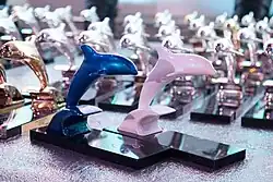 In the last years of the Award's history, the winners were awarded Silver, Gold, Black or White Dolphins. The outstanding artworks were rewarded with the Silver and Gold Dolphins. The Production Arts & Crafts category winners received Black Dolphins. The Grand Prix – awarded to the best production of the festival – is a White Dolphin. The Grand Prix will be awarded to the films selected among the Gold Winners. From 2015, the festival has a new trophy for the best production company, the Blue Dolphin.[8]