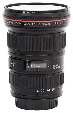 The EF 16–35 mm lens is a family of professional wide-angle lenses made by Canon Inc. The original version, the EF 16-35mm f/2.8L USM, replaced the EF 17-35mm f/2.8L USM lens, which had itself replaced the EF 20-35mm f/2.8L lens.