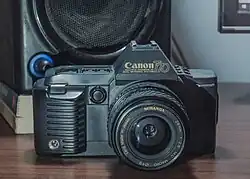 The Canon T70 was a 35mm FD-mount single-lens reflex camera introduced in April 1984 as the second in Canon's T series.[1] The T70 started with the concepts explored in 1983's T50, took them further, and applied them to a more sophisticated camera. While the Program AE-only T50 was intended as a beginner's camera, the T70 gave the photographer a lot more control over the camera's operation while keeping the T-series philosophy of simplicity in control and operation intact.