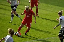 At the end of the 2015–16 season, she enjoyed her team's champion title.[1] She played in three matches of the Group 9 of the 2016–17 UEFA Women's Champions League qualifying round.[20][21][22]