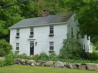 The historic district covers about 500 acres (200 ha) of mainly rural landscape, and is roughly linear, extending along Route 179 between East Mountain and North Mountain Roads. A roughly triangular section bounded by West and Meadow Roads extends the district west of the main road. There are 84 contributing buildings, most of which are either primary buildings (houses, schools, etc.) or major secondary buildings such as barns. Most of the buildings are wood frame residences, in Federal or Greek Revival styles, although there are a few examples of later Victorian architecture. No buildings appear to date from the earliest time of the area's settlement. One of the oldest surviving houses in the district is the Caleb Case House, built in 1785. Non-residential buildings include the church, a general store and blacksmith's shop, and several district school buildings which have been altered for other uses. Major modern intrusions include a Jehovah's Witnesses hall and the 1941 Cherry Brook School.[2]
