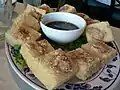 Tofu skin | 腐皮 | fu6 pei4 | fǔpí | Usually used as wrapping for ground pork dishes. It is fried in a similar manner as spring rolls. | |