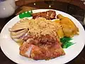 | Rice with roast goose and goose intestines | 燒鵝鵝腸飯 | 烧鹅鹅肠饭 | siu1 ngo4 ngo4 coeng4 faan6 | shāo é é cháng fàn |