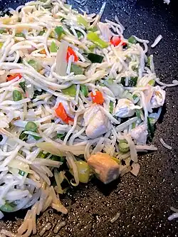 Compared to other Chinese regional cuisines, the flavours of most traditional Cantonese dishes should be well-balanced and not greasy. Apart from that, spices should be used in modest amounts to avoid overwhelming the flavours of the primary ingredients, and these ingredients in turn should be at the peak of their freshness and quality.[4] There is no widespread use of fresh herbs in Cantonese cooking, in contrast with their liberal use in other cuisines such as Sichuanese, Vietnamese, Lao, Thai and European. Garlic chives and coriander leaves are notable exceptions, although the former are often used as a vegetable and the latter are usually used as mere garnish in most dishes.