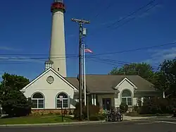 Cape May Point is a borough located at the tip of the Cape May Peninsula in Cape May County, in the U.S. state of New Jersey. The borough, and all of Cape May County, is part of the Ocean City metropolitan statistical area, and is part of the Philadelphia-Wilmington-Camden, PA-NJ-DE-MD combined statistical area, also known as the Delaware Valley or Philadelphia metropolitan area.[19] As of the 2020 United States census, the borough's population was 305,[10] an increase of 14 (+4.8%) from the 2010 census count of 291,[20][21] which in turn reflected an increase of 50 (+20.7%) from the 241 counted in the 2000 census.[22] The summer population can reach 4,500.[23]