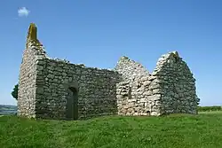 For a time, Capel Lligwy was used as a private place of worship for Lligwy House, a "venerable mansion" once owned by the Lloyd family which came into the possession of William Irby, 1st Baron Boston, in the 18th century.[2][6][7] After the early part of the 18th century, however, the chapel became unused and began to fall into disrepair.[2] The walls remain to gable level, with some traces of render on the inside, but the roof has gone.[2]