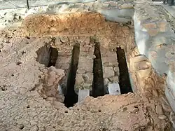 Capellen lies on the old Roman road, today's Kiemwee, from Trier in Germany to Reims and Paris.[3] Some years ago, a Roman milestone was found on the Kiem in the direction of Windhof to the west of Capellen.[4] Furthermore, in 2002, beside the Roman road to the east, the remains of several Roman buildings and brick kilns (see below) were uncovered. These appear to date back to the 4th century.
