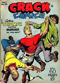 Captain Triumph is a superhero from the Golden Age of Comics who first appeared in Crack Comics #27, published in January 1943 by Quality Comics.[1] He continued to appear until the end of the series with issue #62 (Sept 1949).[2]