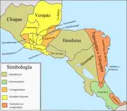The Captaincy General of Guatemala (Spanish: Capitanía General de Guatemala), also known as the Kingdom of Guatemala (Spanish: Reino de Guatemala), was an administrative division of the Spanish Empire, under the viceroyalty of New Spain in Central America, including present-day Costa Rica, Nicaragua, Honduras, El Salvador, Guatemala, and the Mexican state of Chiapas. The governor-captain general was also president of the Royal Audiencia of Guatemala, the superior court.