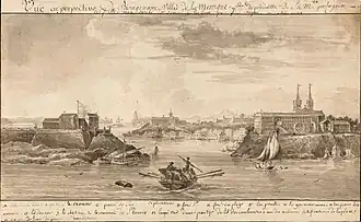 In 1619, the Captaincy of São Tomé was ceded by its donatário and returned to the Portuguese Empire. A significant portion of its territory, extending from the area of the present-day city of Macaé to Itapemirim in Espírito Santo, including the largely unexplored interior, was incorporated into the Captaincy of Rio de Janeiro. In 1674, the Captaincy of Paraíba do Sul, also known as the Captaincy of Campos dos Goytacazes, was established by subdividing the northern part of the Captaincy of Rio de Janeiro. This new captaincy covered a region similar to that previously occupied by the Captaincy of São Tomé.[5] In 1679, after the Restoration of Portugal's Independence from Spain, Governor Manuel Lobo was ordered to establish a colony on the eastern side of the River Plate, which he named Colonia del Santíssimo Sacramento, in an expedition that gathered 400 soldiers recruited in Rio de Janeiro and São Paulo.[6] Four ships were dispatched, loaded with supplies and armed with 18 cannons.[7]