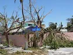 Captiva was seriously damaged in August 2004 when the eastern eyewall of Hurricane Charley struck North Captiva, immediately before hitting Charlotte Harbor to the north-northeast. Initial reports indicated that 160 buildings were destroyed and another 160 seriously damaged. Reports indicate that the storm surge cut a path 491 yards (449 m) wide across the narrowest part of North Captiva, separating the island. The separation of the two halves of the island began three years earlier during a series of tornadoes caused by Tropical Storm Gabrielle that passed through the area in September 2001.[9] The new pass filled in within a few years and is now back to its pre-Charley state. Most of the invasive Australian pines on the island blew over in the hurricane, making room for native mangroves and sabal palms.