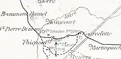 The Battle of Thiepval Ridge was the first large offensive mounted by the Reserve Army (Lieutenant-General Hubert Gough), during the Battle of the Somme. The offensive was intended to benefit from the Fourth Army attack at the Battle of Morval, by starting 24 hours afterwards. The battle was fought on a front from Courcelette in the east near the Albert–Bapaume road, to Thiepval and the Schwaben Redoubt (Schwaben-Feste) in the west, which overlooked German defences further north in the Ancre valley and on the rising ground towards Beaumont Hamel and Serre on the other side of the river. Thiepval Ridge was fortified and the German defenders fought with great determination, while British infantry–artillery co-ordination declined after the first day, due to the confused nature of the fighting in the maze of trenches, dug-outs and shell-craters.[1]