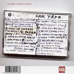 Car Tape is the third album by Melbourne singer-songwriter Lisa Miller. It is an album of covers and was released in Australia in 2002 on Raoul Records.[1] The album peaked at number 8 on the Australian heatSeekers and at number 24 on the Australian alternative chart[2]