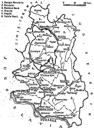 Administratively, Caraș County was originally divided into five districts (plăși):[1]