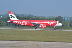 A Thai AirAsia Airbus A320 in a livery celebrating the band's 30th anniversary, seen here at Khon Kaen Airport in October 2013.