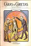 The Caras y Caretas was founded in Montevideo in 1890. Its main features were political satire, humour and topical issues, visually displayed through cartoons and photographs.[2] Eustaquio Pellicer (associated with French artist Charles Schütz)[3] was the director since its first number (dated 20 July 1890) until #144. At the invitation of Argentine journalist Bartolomé Mitre Vedia, Pellicer moved to Buenos Aires, establishing the Argentine edition of the magazine there. The first number (released 19 August 1898) had 24 pages.[1]
