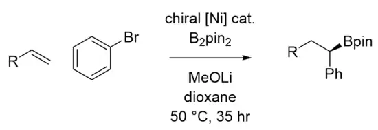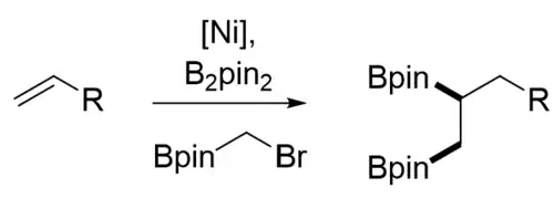 - ^ Ye, Y.; Lin, Y.; Mao, N. D.; Yang, H.; Ye, X. Y.; Xie, T. (2018). "Recent progress in nickel-catalyzed carboboration of alkenes". Organic & Biomolecular Chemistry. 140 (9): 3223–3227. doi:10.1021/jacs.8b00881. PMC 6002770. PMID 29384373.