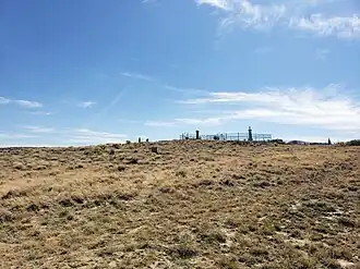 Carbon Cemetery is a cemetery in the coal-mining ghost town of Carbon, Wyoming. It was one of the first formal burial grounds in Wyoming, and is one of the few remaining vestiges of the town. Starting about 1868 the dead were brought to the town to be buried. By the late 1880s coal mining dropped off and the railroad moved elsewhere, and the town began to die. Victims of mine explosions were buried in the cemetery in 1903 and 1908. Its last resident died in 1912. A few burials took place after the town was abandoned.[2][3]