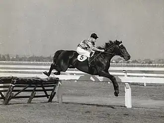 Carbon Copy raced between 1948 -1951 and raced for four seasons a sensation in his 3 year old season winning major races in Sydney and Melbourne raced in grand company against the champions Comic Court & Delta and after winning the 1949 AJC Plate at Randwick Racecourse defeating Melbourne Cup winner Russia by 10 lengths was to become the greatest stake winning 3 year old in Australian turf history with an offer of 95,000 pounds being refused by the owners.[3][4][5] Carbon Copy's best son after retiring to stud where he was foaled at was the 1962 AJC Sydney Cup winner Grand Print. Des McCormick trainer was a former drover from Wangaratta was also a successful trainer of jumpers with notables being Winterset and Van Perri from his Mordialloc, Victoria stables. Des McCormick was inducted into the Australian Racing Hall of Fame in 2019.[6][7]