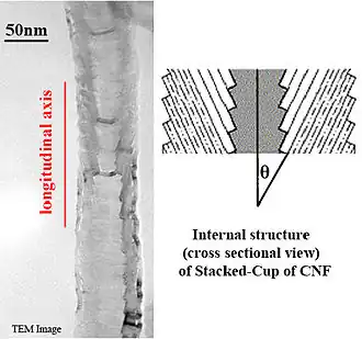 - ^ a b Hammel, E; Tang, X; Trampert, M; Schmitt, T; Mauthner, K; Eder, A; Pötschke, P (2004). "Carbon nanofibers for composite applications". Carbon. 42 (5–6): 1153–8. Bibcode:2004Carbo..42.1153H. doi:10.1016/j.carbon.2003.12.043.