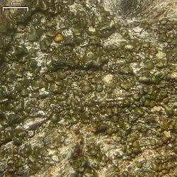 Thallus of Carbonicola myrmecina, growing on the bark of Pseudotsuga menziesii; magnified 20X
