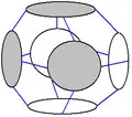 The internal cavity of a carcerand can be as large as 1700 Å3 (1.7 nm3) when six hemicarcerands form a single octahedral compound.[5] This is accomplished by dynamic covalent chemistry in a one-pot condensation of 6 equivalents of a tetraformyl calixarene and 12 equivalents of ethylene diamine with trifluoroacetic acid catalyst in chloroform at room temperature followed by reduction of the imine bonds with sodium borohydride.