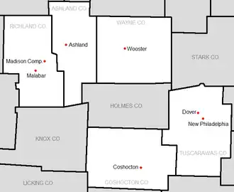 Attempts to form the Cardinal Conference began as early as 1949; by 1955, discussions began in earnest and on April 8, 1959, the new conference was officially formed.[1] The conference remained stable throughout the 1960s and 1970s. In 1981, Mansfield Malabar became the first school to leave the conference; in 1983, Coshocton High School followed suit.[1] The remaining conference members discussed adding several schools, including readmitting Malabar, adding Mansfield Senior High School or Mt. Vernon High School, but travel considerations prevented any agreement from being reached.[1]