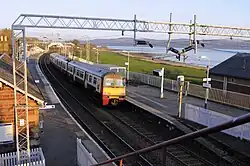 Cardross railway station is a railway station serving the village of Cardross, Scotland. The station is 19 miles 50 chains (31.6 km) from Glasgow Queen Street, measured via Singer and Maryhill.[6] It is on the North Clyde Line between Dalreoch and Craigendoran, positioned on the banks of the north side of the River Clyde. The station is managed by ScotRail, who operate all services.