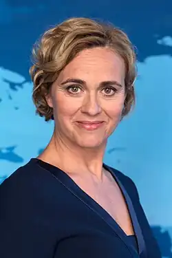 Caren Miosga (born 11 April 1969) is a German journalist and television presenter. She was a longtime presenter of the news television show Tagesthemen on ARD.