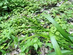 Carex ischnostachya is an herbaceous graminoid plant in the sedge family (Cyperaceae). It is native to the eastern Asia, where it is found in China, Japan, and Korea.[1] Its natural habitat is in forest openings in wet areas, in hills or mountains.[2] It is a common species, and is often found along roadsides or trails.[2][3]