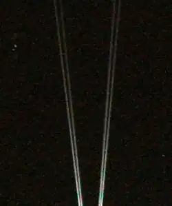 In this example the two sets of slits on the left are angled at 12 degrees to each other. Those on the right are angled at 10 degrees to each other. Different telescope and imaging combinations may require slightly different angles.