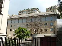 The main events that characterized the district in the twentieth century are mainly related to the urban redevelopment of Via Madre di Dio and surrounding areas. A first significant intervention in the “Marina” area had been carried out towards the end of the nineteenth century, with the burying of the “Seno di Giano” to create Corso Principe Oddone (since 1946 renamed Corso Maurizio Quadrio). The characteristic “scoglio Campana” thus disappeared.[12] On the area removed from the sea in the first decade of the new century the “Albergo Popolare” (1906) and the “Casa della Gente di Mare” (1909) were built,[13] intended to accommodate migrants and seafarers in transit in the port of Genoa at popular prices. Both buildings were to be demolished in the 1990s to make way for a parking lot.[14] The "Popular Hotel," which had been converted into a fire station after the war, was demolished with explosive charges on May 12, 1992.[15][16]