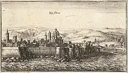 Sixteenth-century walls. These walls were built between 1320 and 1327 and include the section from the Ponte Monumentale to the Grazie walls, encompassing the entire hill of Carignano; this section of wall, preserved only in part, was restructured, but keeping the same route, in the first half of the sixteenth century to adapt it to the new defense techniques, with the contribution of famous military architects of the time, such as Giovanni Maria Olgiati[55] and Antonio da Sangallo. From the Porta degli Archi (or St. Stephen's) gate, which stood where the Monumental bridge is and with the 16th-century renovation replaced the older Porta dell'Olivella, the walls of St. Clare, along whose route runs Corso A. Podestà. This was followed by the Capuchin walls. Between the two stretches of walls, on an ancient service gate was rebuilt the Porta degli Archi. At the end of the Capuchin walls, at the southwest limit of the walled city cell, stood the Bastion of the Witch, where a cannon battery was later installed. From here the walls continued under various names (Strega's, St. James's, St. Margaret's, and Marina walls) on the sea cliffs to the Seno di Giano, connecting with the older city wall. The sea walls have for the most part disappeared with the urbanization of the area and the creation of the sea ring road: a few remnants can be seen on which stands the loggia of Villa Mylius.[5][8] The Walls of St. Clare and the Capuchins were named after two convents that stood nearby. The one of St. Clare, dating from the mid-17th century, closed in 1797 by the Ligurian Republic, was demolished in the late 19th century after a brief reopening in the middle of the century; that of the Capuchins, on the other hand, was demolished in the 19th century for the construction of the Galliera Hospital.[2][5]
