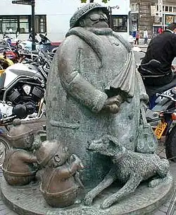 In 1993 a bronze statue depicting Grandma looking up at the window of the studio in Ipswich where he used to work was unveiled by Warren Mitchell. Giles, who was by this time using a wheelchair, was present at the unveiling.[15]